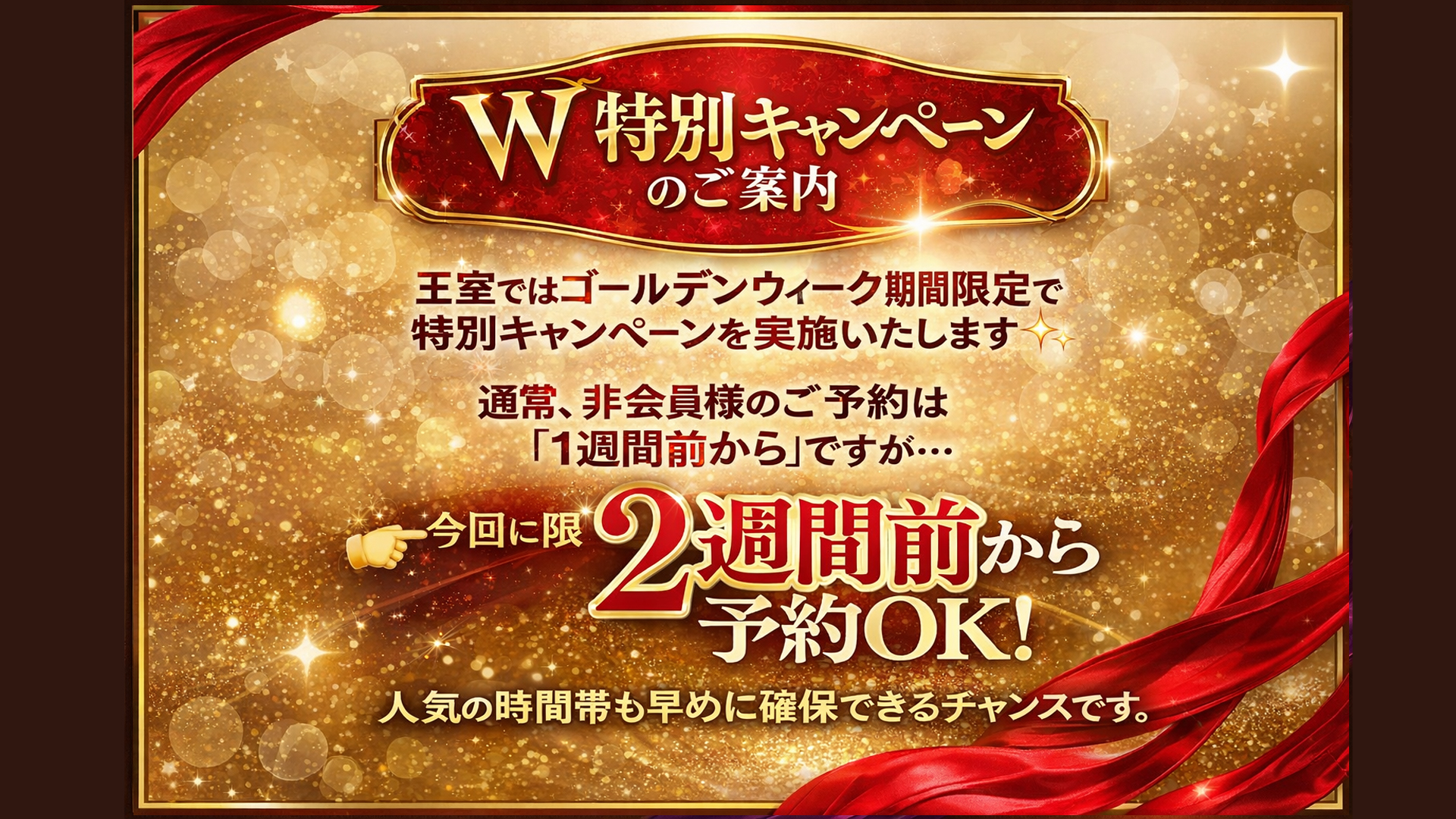 今回に限り【2週間前から予約OK】