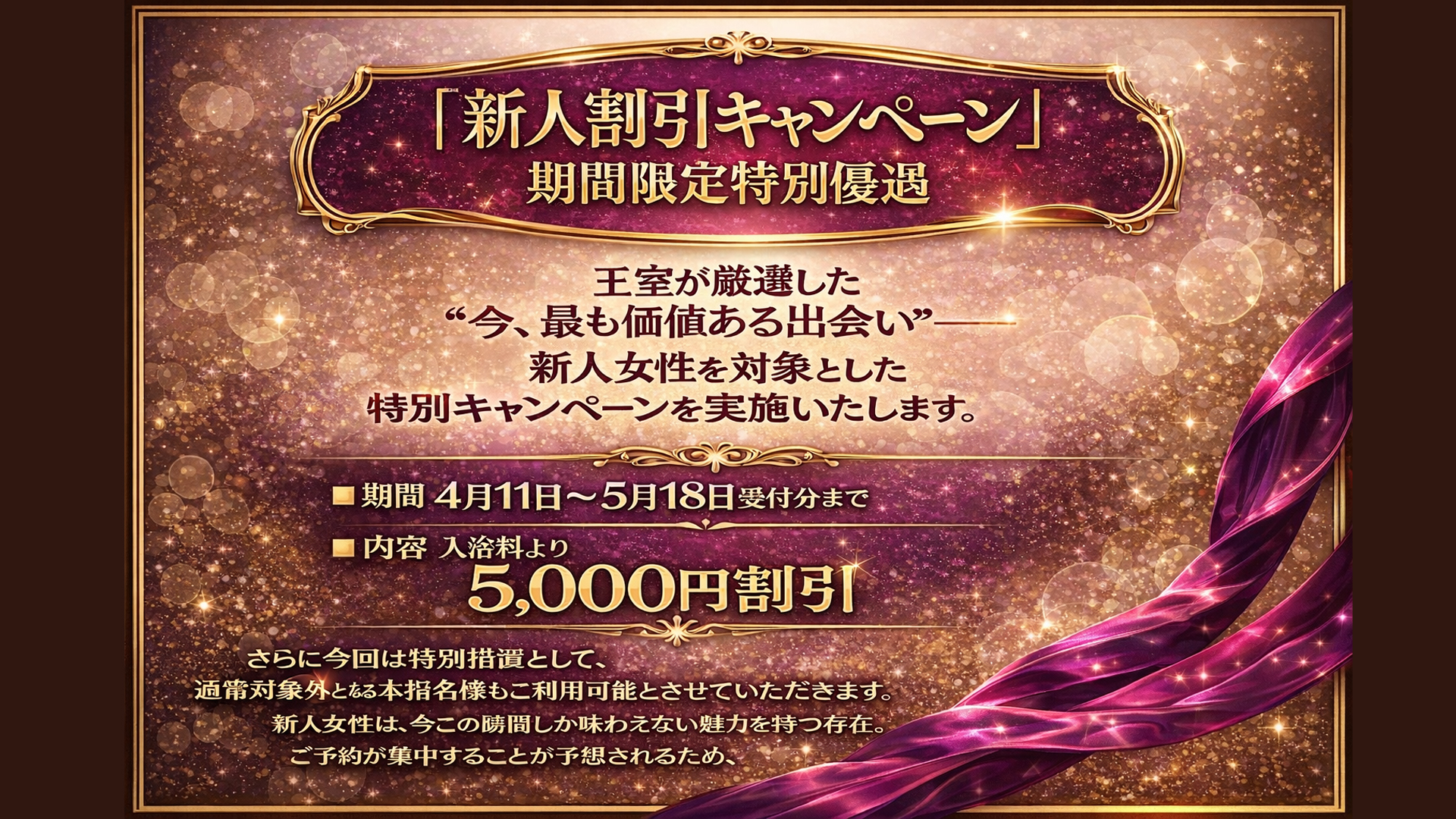 新人女性を対象とした特別キャンペーンを実施いたします。